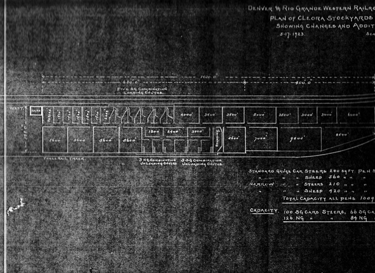 Salida. According to the 1923 Sanborn map (above), the stockpens were serviced by two dual gauge tracks, one on each side