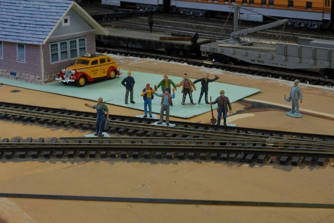 The D&RGW work crew of Howard, Howard and Fine was seen back on the job busily laying rails to the narrow gauge