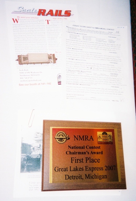 Back at the hotel, we frantically worked on filling out paperwork, scouring what books I had brought (for photographic examples of the prototype of Alex's D&RGW 30' flat car), and Alex writing drafts of his modelling and recalling his work. Much easier to do if we had been home, with more time and resources available. Then we high-tailed it to a Kinkos, made copies of what we could find in my books, went back to the hotel, and Alex reassembled and rewrote all his paperwork, which was finally done around 1:00 AM! Finally, we got to bed!