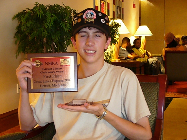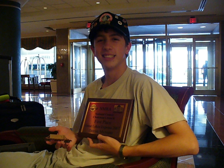 Our last day, but not the last day of the convention. Alex was meeting his Mom at lunch time, because he had to get home in time to leave for Band Camp this weekend. We immediately went to the model contest award ceremony breakfast, where we found that Alex had been rewarded for his efforts! A National Chairman's Award awaited Alex, with his D&RGW HOn3 6000 series flat car! After a very exciting ceremony for us, we walked the few blocks to Cobo Hall for the National Train show, where we bought many more fine models, visited the giant Free-MO and especially spectacular LEGO layouts. A great Train Show and Award Banquet for our 1/2 day. Unfortunately, that was the conclusion of the convention for us, with Alex having to return to Charlevoix, MI, but a fantastic summer.