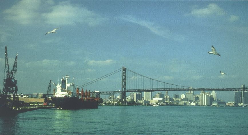 | Ambassador Bridge to Windsor, from Detroit. | Detroit night skyline |