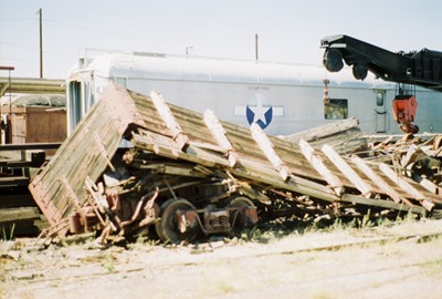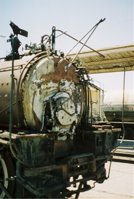 After having our pancake breakfast and cleaning up, we left our campsite as the heat started back in, to spend the day at Ogden's Union Depot. We visited the yard where static displays of locomotives and rolling stock were on hand, up close and personal. Shortly after Joe and I had visited in March, we learned that Consolidation 223 and some rare NG freight cars had been in a fire. C-16 #223 was one of only 3 remaining C-16s, the only one built by Grant. #268 at Gunnison and #278 at Cimmaron were built by Baldwin Locomotive Works. I took some pictures of the wrecks. Most of the #223 was intact, with the exception of the cab being burnt off. Maybe some day it will be restored.