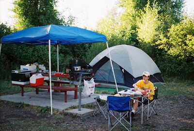 We had some time left, we went over to Union Depot downtown, and were lucky the Hobby Shop (in the Depot) was open that day. We found some new kits, some RR pins and looked through everything. We didn't have time to do much else today, so it was time to head back to camp, look at our kits and train magazines. We cooked steaks and sat out at our nightly bonfire.