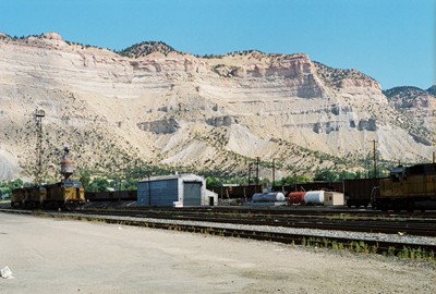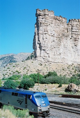 After another great breakfast at Jeremiah's, (sadly), we checked out of the Best Western and headed south down I-15. We went east at Spanish Forks to follow the old D&RGW mainline along US 40. At Gillully, we did catch a glimpse of a train. Soldier Summit was as barren as ever. We did spot some trains occasionally. We stopped at Castle Gate just minutes before the California Zephyr came through, which we would catch up to later. We spent awhile waiting in vain for another train to come by, and we finally had to give up.