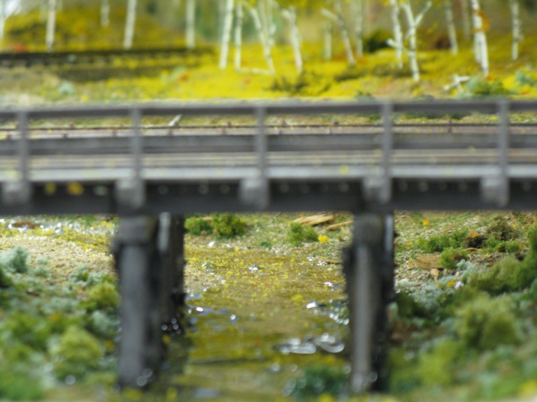 Alex is scenicking the riverbed through the trestles at the loading tracks and wye, which were required to be removed.