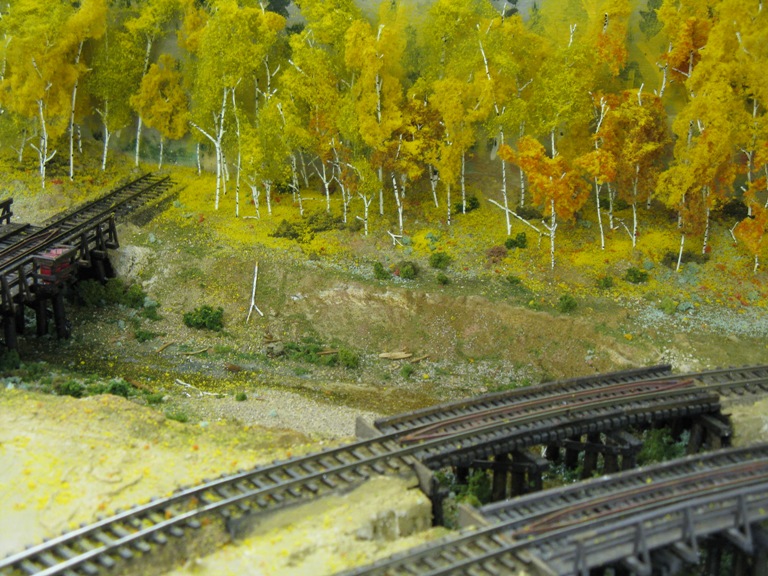 from the narrow gauge mainline and branch to Monarch. INstalled, cut, and stained ties from flextrack to Otto girder