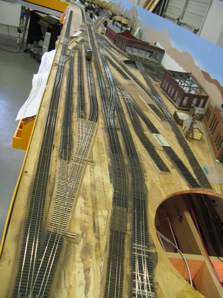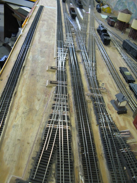 remaining available No. 6 Shinohara switches. Corkbed has been caulked down through the yard tracks and wye. Using the
