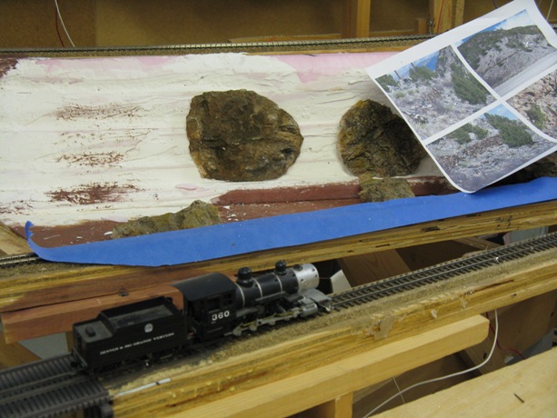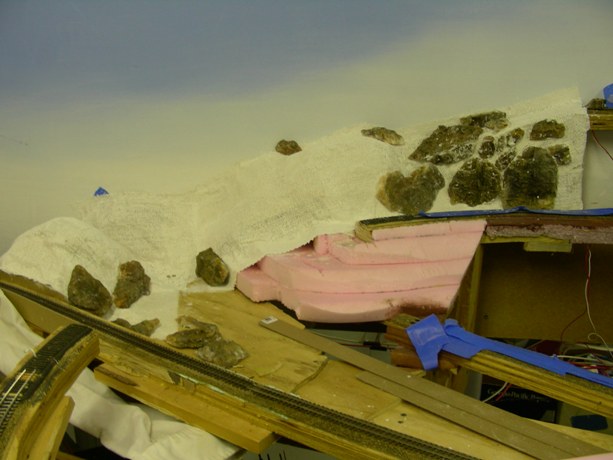 Jake's been very busy working on the scenery, especially on the creek bed and hills into the backdrop. He and Barry