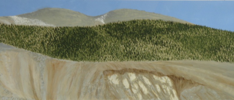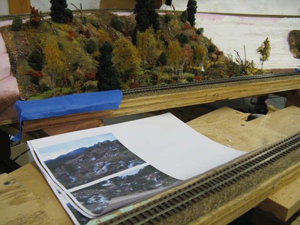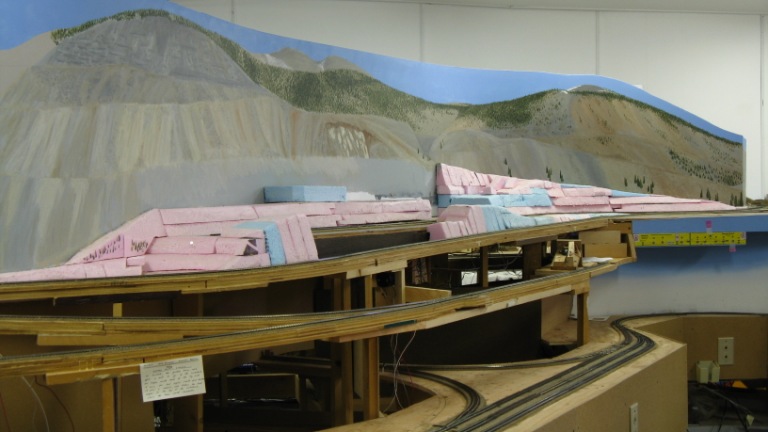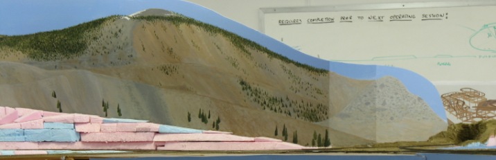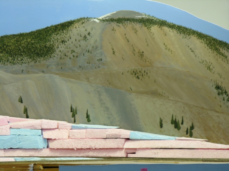 The mountain range from the wye to Mears' has been repainted in light gray and brown for a basic background
