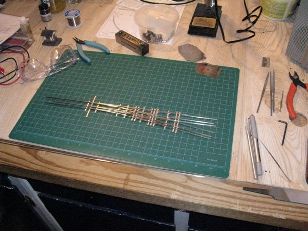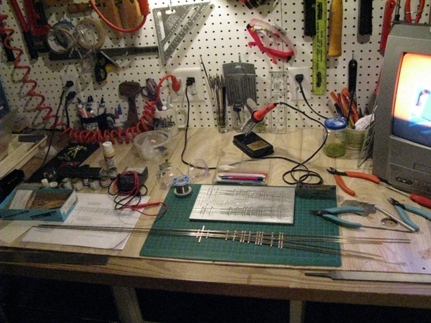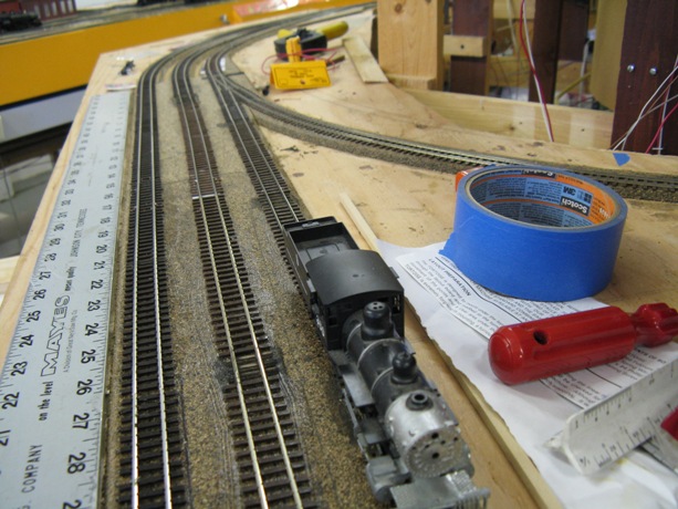 GaryM continued adding track feeders and began laying out the narrow gauge scale rails.