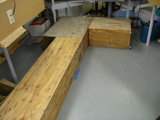 Self-aligning pins have been added to the drop shelf, and the final deck added, to level the drop shelf with the surfaces