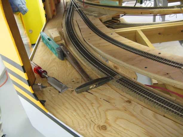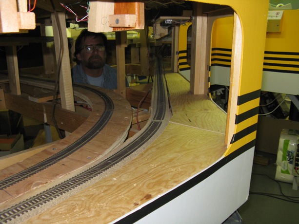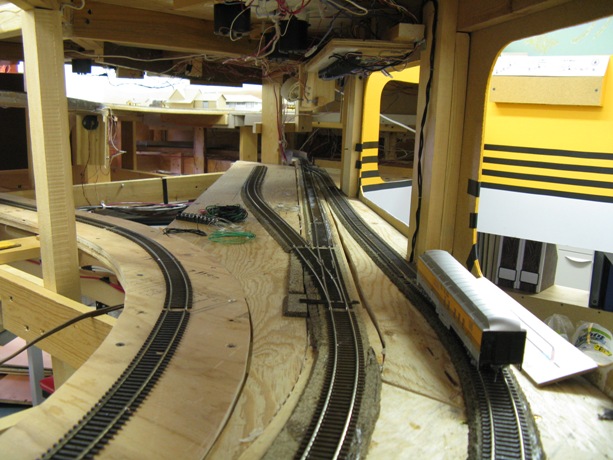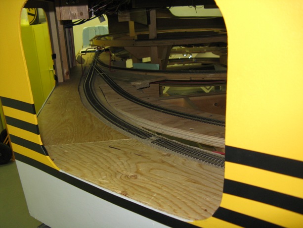 the "loop" rerouted around the benchwork out of the access "hole" to the Dispatcher panels.