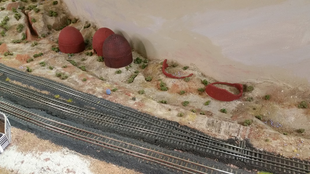 facing each other, accessible from crude wood platforms. Later, a 5th kiln may have been added. DanielS began scenery modifications with de-modernizing