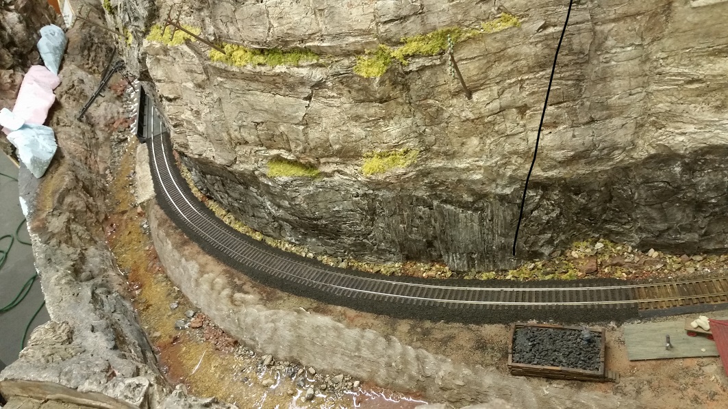 TomG finished ballasting through the Gorge, up to the track that will be demo-ed to rebuild Hel Junction.