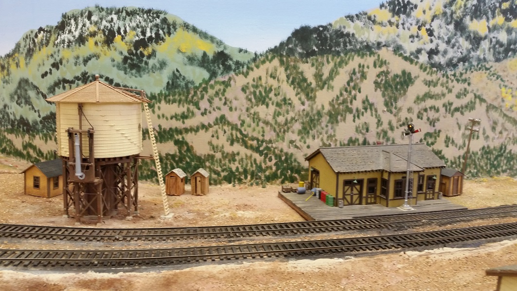 TomG worked on the scenery base at the freight station road crossing and tank.