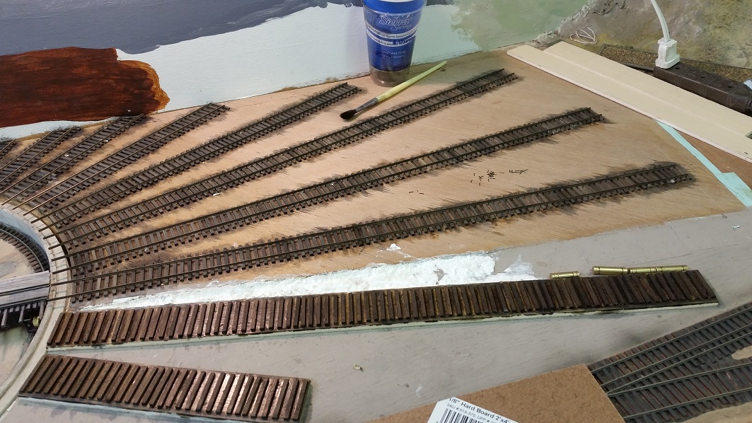 ties, and then stained. Tons more work to go, but works operationally except on ash conveyor track.