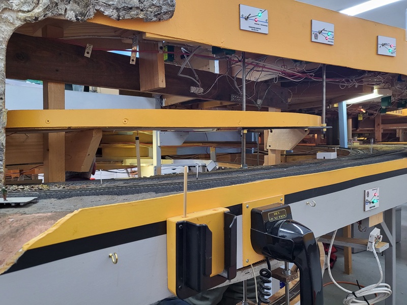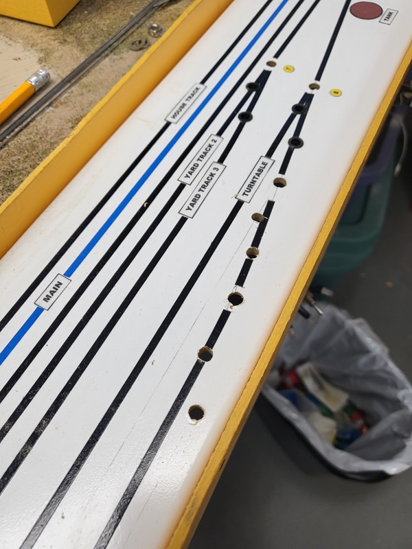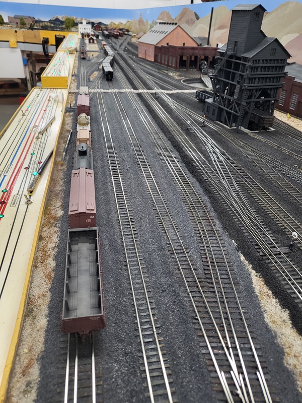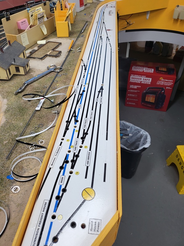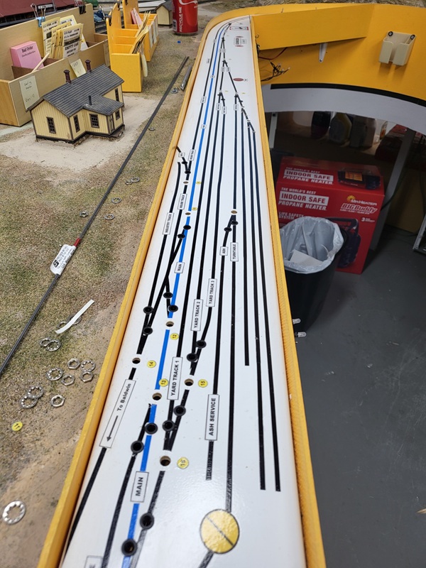 TomG finished laying the rails on the work car track, new garden track, and coaling tower. GaryM finshed installing new switch panels with new track layout,