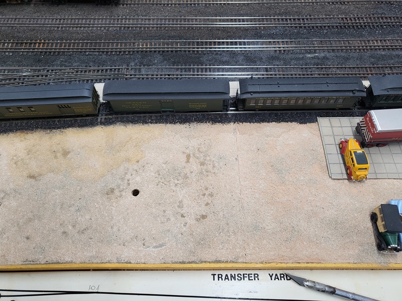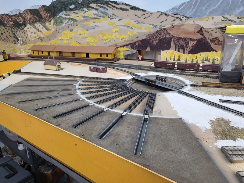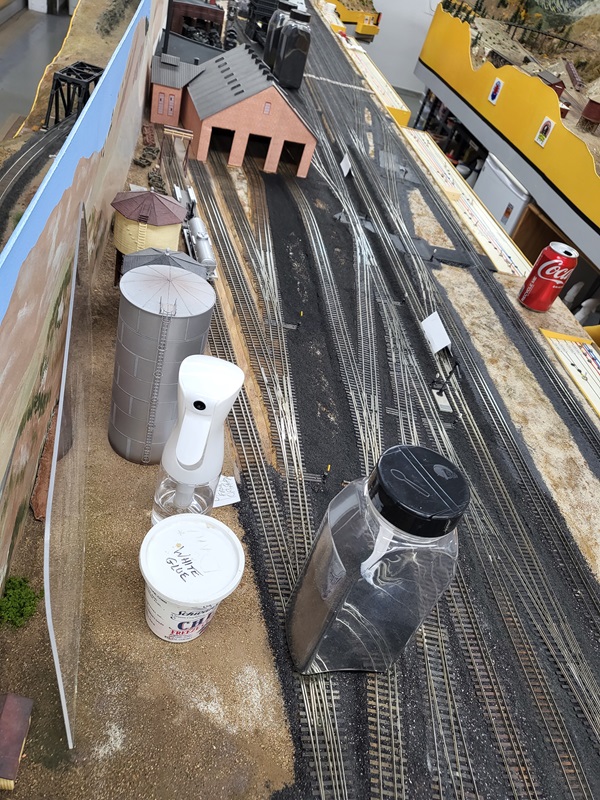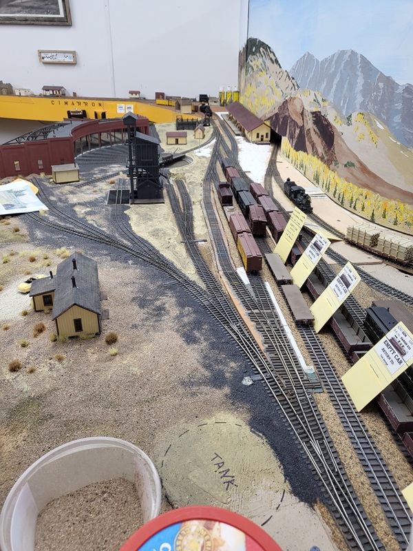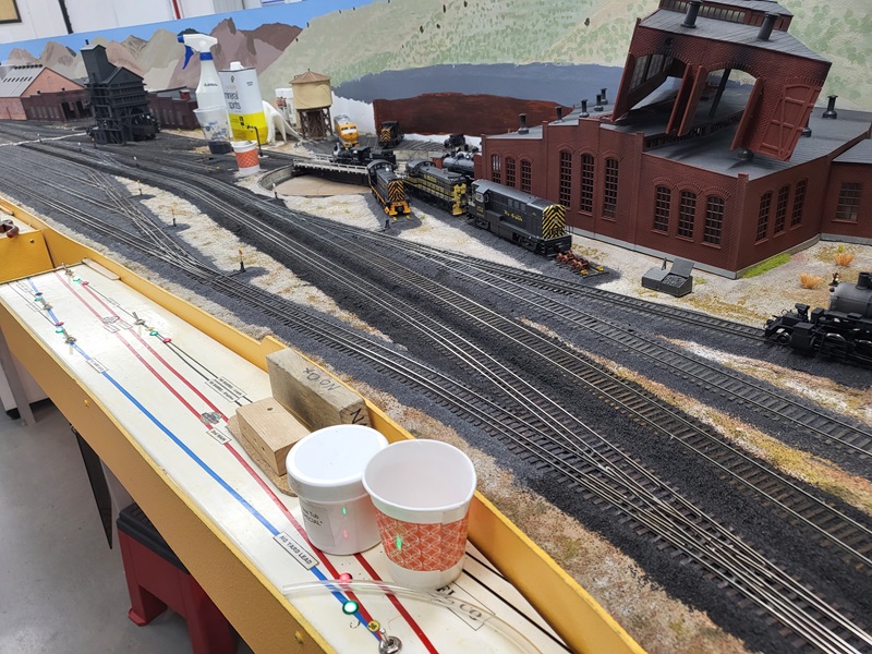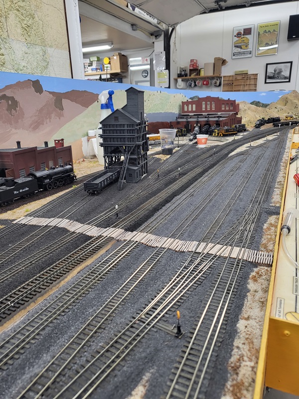 TomG added the switches and roadbed for the two new tracks to the yard for the rotary train and work cars. The rails to the coaling tower were removed to be replaced.