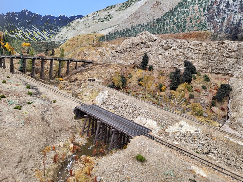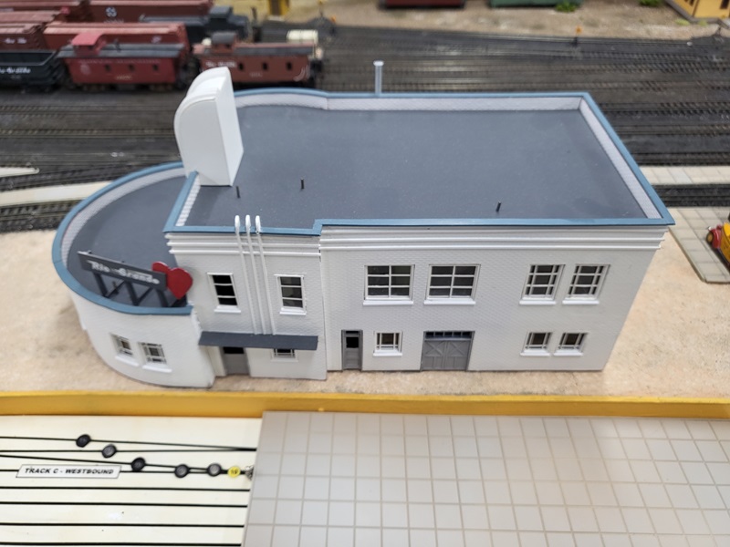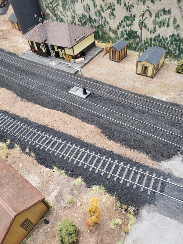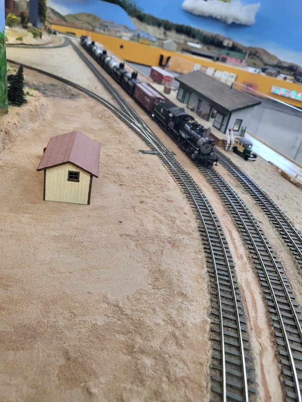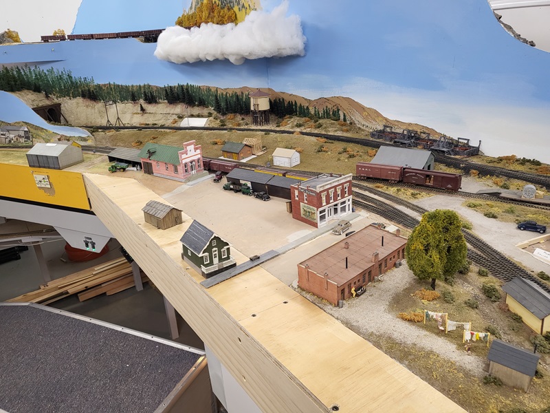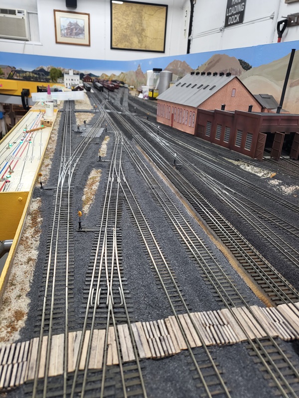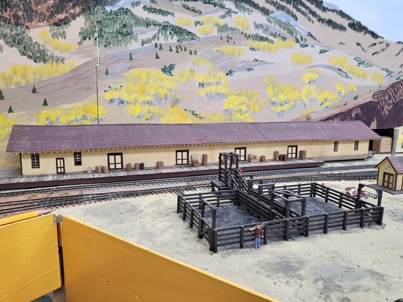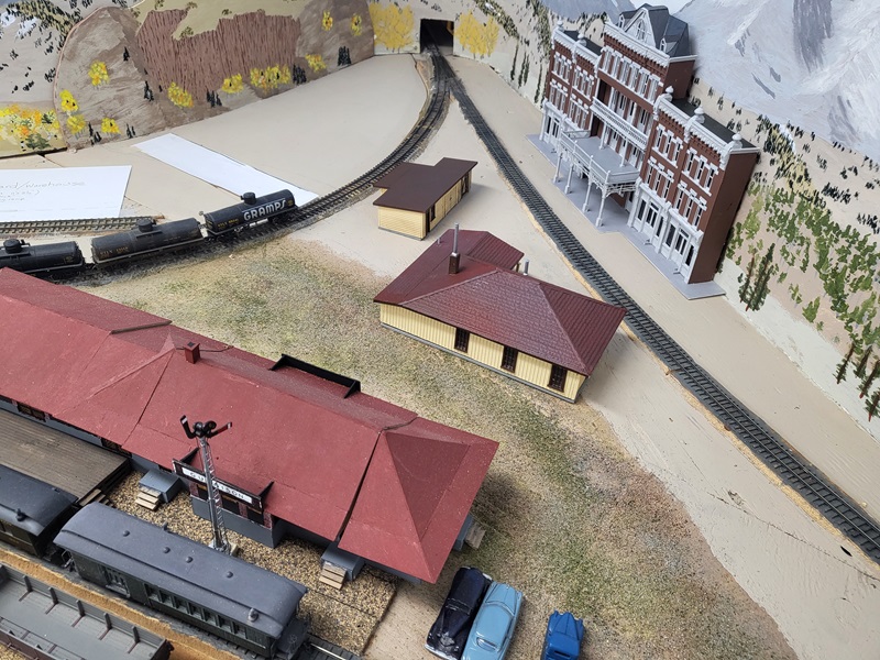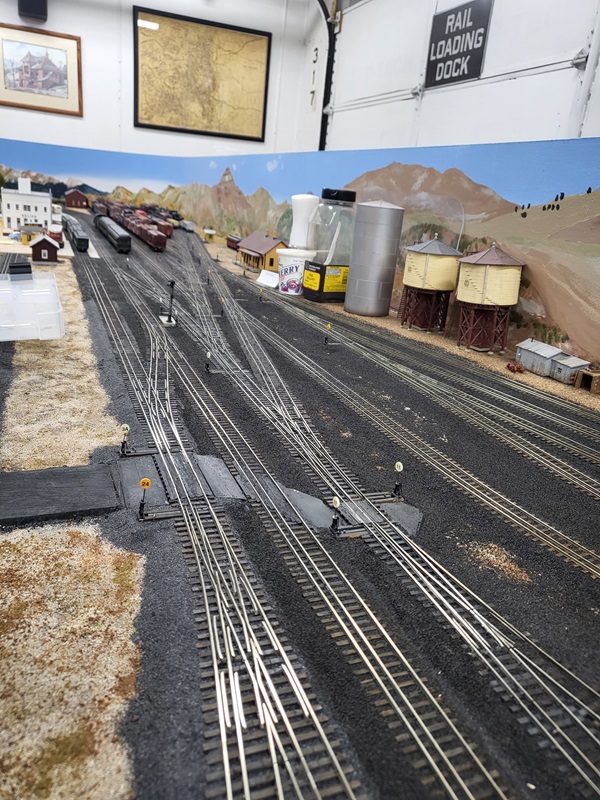 the freight house, which really made those details pop! KentS built a backdrop for the throughway to the Baldwin Branch. TomG imstalled the