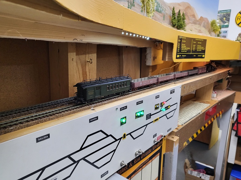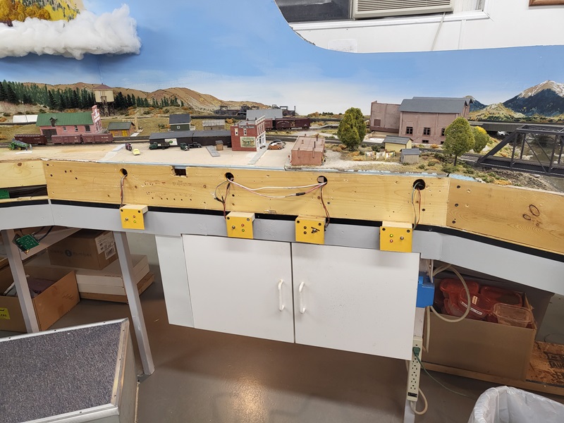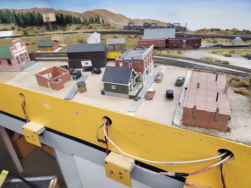 KentS tore off the West Salida switch panel, temporarily remounted each switch toggle so track remains fully operational. GlennG came out to layout the buildings on the south side of first street. GaryM worked on some track cleaning and ballast patching along the mainline.