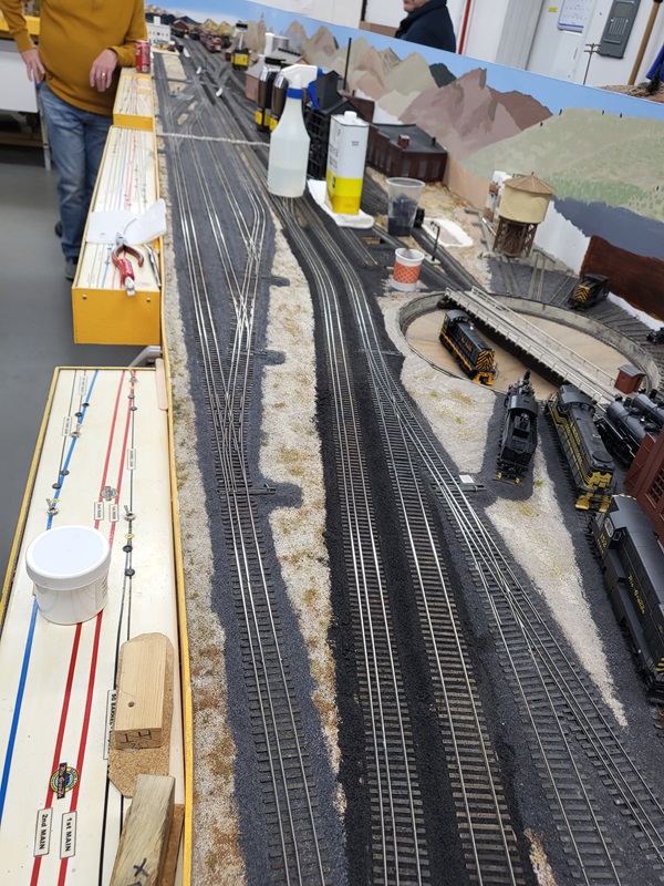 TomG installed switchstands throughout the mainlines and yards. GaryM continued ballast patching.
