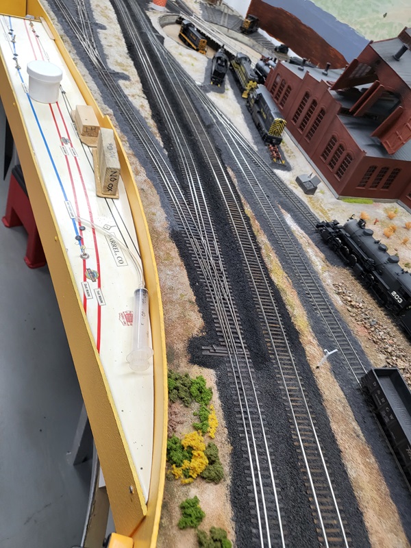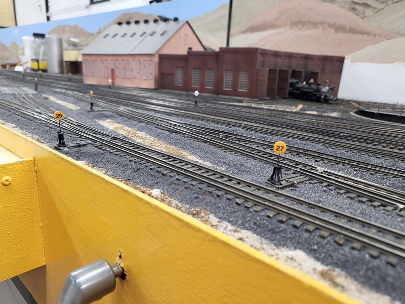 TomG repositioned Switchstand 22 because it was getting caught by some engines on the switch next to the coaling tower. The SG engines bumped through the Turntable