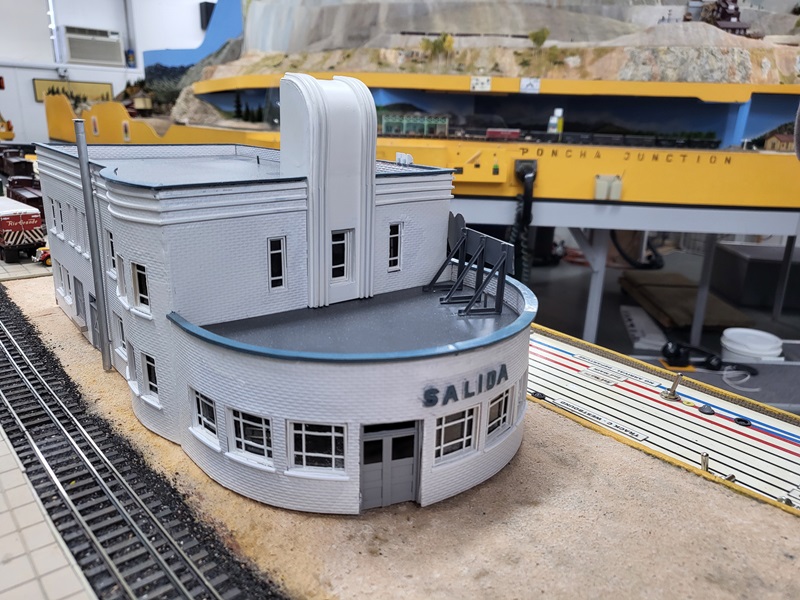 StuJ brought out theis scratchbuilt La Veta hotel backdrop front that he has been working on, for a test fit.