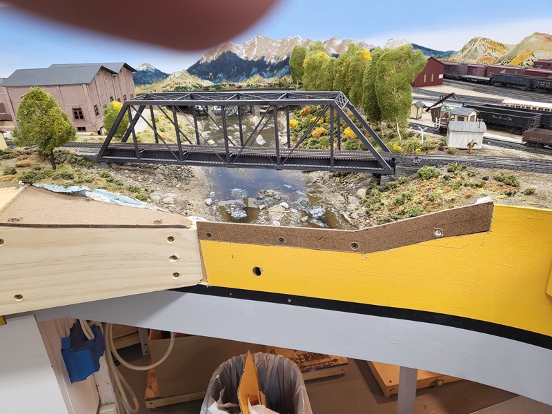 KentS finished the benchwork on West Salida, mounting the extended surface, cutting down the fascia on the Arkansas River and replacing fascia.