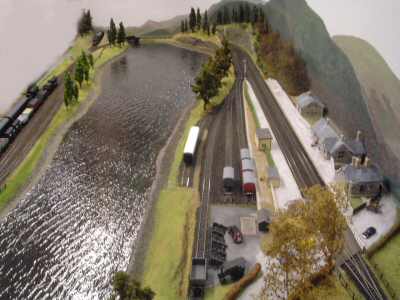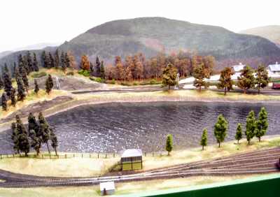 Lake is modelled in N scale - that's a scale of 2mm = 1 foot. The scenic