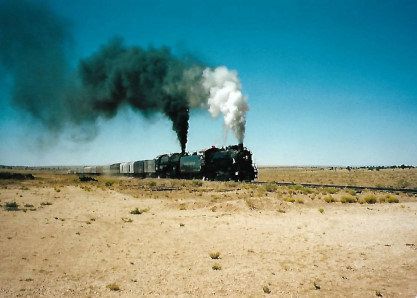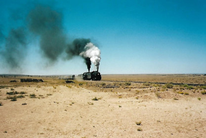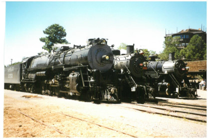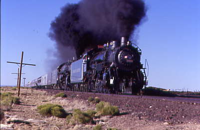 As the coaches of the regular Grand Canyon Railway train reverse onto a siding, GCRY 2-8-2 4960