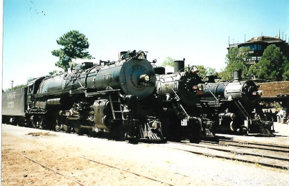 ATSF 3751, GCRY 4960 and GCRY 18 at the Grand Canyon with El Tovar Lodge in the background.