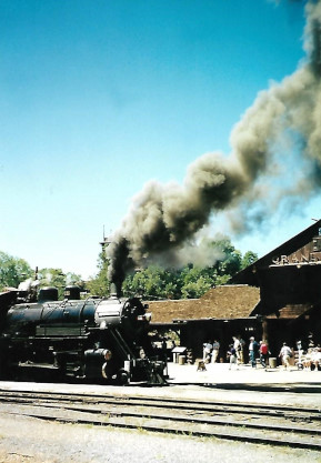 GCRY 2-8-0 18 steaming up as it reverses out of the Grand Canyon station area. We had some time to walk around the South Rim before the return trip to Williams.