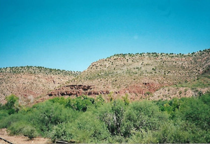 Rocky outcroppings along the route back to Clarkdale. After de-training, I took pictures of the equipment and purchased some souvenirs then boarded the bus for the return trip to Williams.