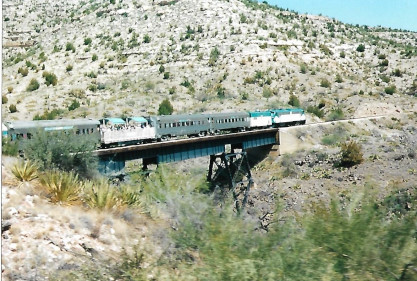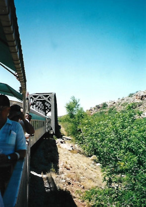The rear of the Verde Canyon Railroad train and a trestle that we crossed.