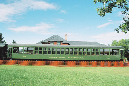 Canadian National Railway observation car 15097 (ex. CNR mountain observation 15097 1974, exx. CNR mountain obs 15097 "Mount Resplendent" 1954, exxx. CNR 1479 "Ogaki" 1929, exxxx. Canadian Government Railways "Ogaki" 1920, exxxxx. Pullman "Ramillies" 1916, nee Wagner 12-1 sleeper "Laconia" 1900.