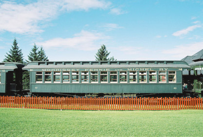 Morrissey, Fernie and Michel Railway coach 62 (ex. Morissey, Fernie & Michel Railway 62 1964, nee Eastern British Columbia Railway 62 1885). We boarded the train and were soon on our way around Heritage Park.