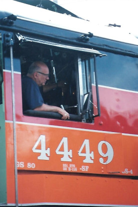 Doyle McCormack at the helm of Southern Pacific 4449 at Wishram.