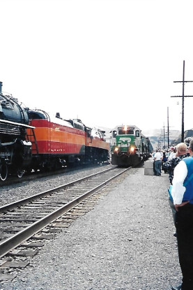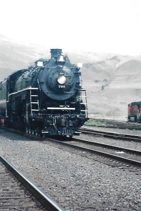 SP&S 4-8-4 700 by itself during its layover. They decided to have Southern Pacific 4449 lead the double-header back to Portland.