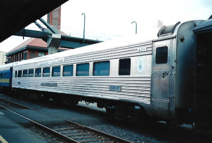 MKT 1202R lounge/sleeper "J. Pinckney Henderson". PPCX 800046. (Ex. AMTK 7200, exx. NP 527, nee MKT 1202R). Built 1954 as 72-seat coach for Texas Special and currently owned by the Lancaster and Chester Railway. It was not part of the convention consist but was at Portland Union Station for the duration of the event.
