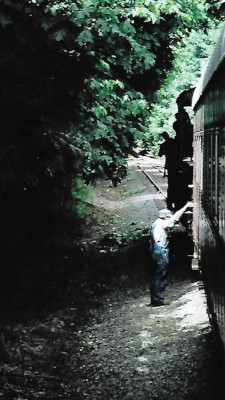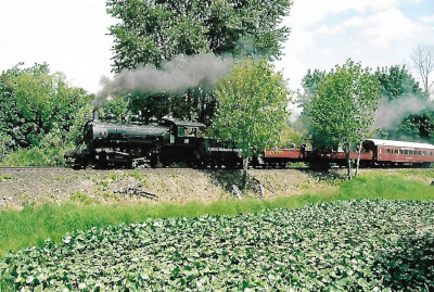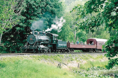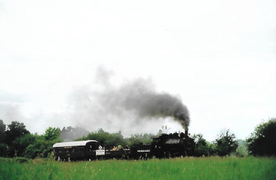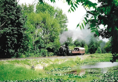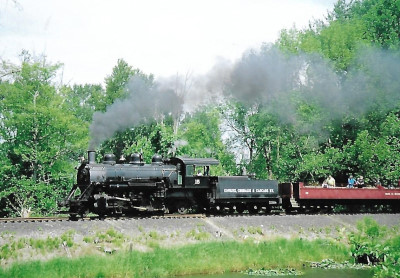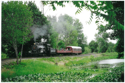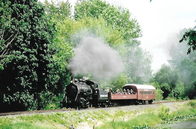 Two fantastic runbys at MP 5.0 performed by Cowlitz, Chehalis and Cascade 2-8-2 15 on this glorious summer's day. Everyone reboarded the train for the ride to Milburn.