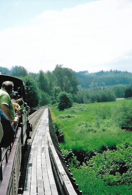 We crossed the 1,083 foot wooden trestle bridge nearing MP 9.7, the end of the journey before the return ride.