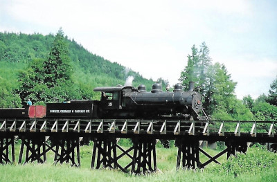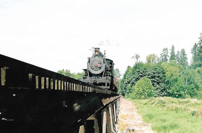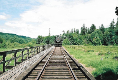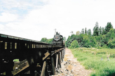 Cowlitz, Chehalis and Cascade 2-8-2 15 on the bridge over the Newaukum River. We continued on to MP 3.9.