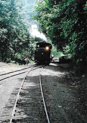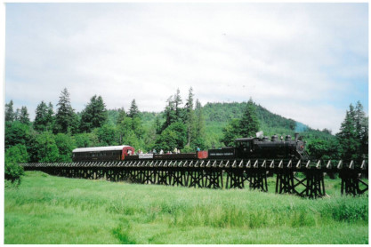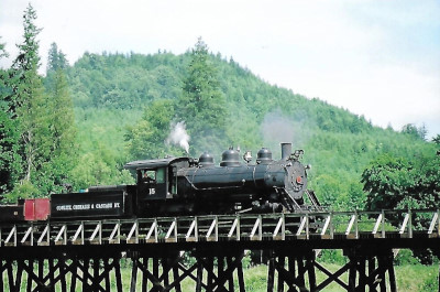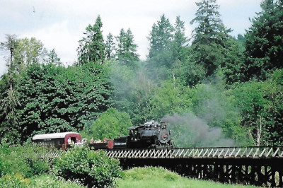 The Chehalis Western purchased trackage from the Milwaukee Road from Chehalis to Raymond in 1936 and operated it as non-common carrier, Chehalis Western Railroad. The line bought was 18 miles from Chehalis to Dryad. This line was not needed any more by the Milwaukee Road as it operated over a nearby Northern Pacific branch line. The Chehalis Western used only the first nine miles of this track from Chehalis to Ruth. A new line was built south from Ruth to Camp McDonald to where timber was ready to be cut. The logs would be taken from Camp McDonald to a log dump at South Bay near Olympia. In late 1975, the line was cut back to Curtis where a log reload was built. This truncated railroad was reorganized into the Curtis, Millburn and Eastern on December 1st, 1975. The logs were now taken from Curtis to Chehalis where they were handed over to the Milwaukee Road. When the Milwaukee Road abandoned all of its trackage west of Miles City, Montana, the Curtis, Millburn & Eastern Railroad was absorbed into a new Chehalis Western. The former Milwaukee Road route to South Bay was taken over by the new Chehalis Western. The Chehalis-Centralia Railroad Association was formed in 1986 as a non-profit corporation. The founders were a group of local citizens whose goal was to restore a 1916 logging locomotive that had been placed in a Chehalis park thirty years earlier. Early the following year, the restoration was begun and over the next two years, several railroad cars were acquired. With restoration completed, scheduled operations began in the summer 1989 over a section of former Milwaukee Road track in the Chehalis-Centralia area. The Chehalis Western then shut down in 1992. The entire line was sold to the City of Tacoma in 1995 and renamed the Tacoma Eastern Railroad. It lasted just three years when in 1998 the railroad was taken over by Tacoma Rail.