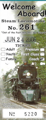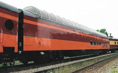 MILW Super Dome 53. PPCX 800862. (ex. NCDOT 400301 "Mount Mitchell" 1996, exx. UP 400301, exxx. C&NW 421 "Powder River" 1985, exxxx. Rail Travel Associates 53 1983, retired 1982 to Great Western Tours, exxxxx. VIA 2701 1978, exxxxxx. CN 2701 1974, exxxxxx. CN 2401 "Athabasca", nee MILW 53). Acquired by Friends of the 261 in 2005.