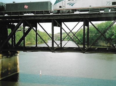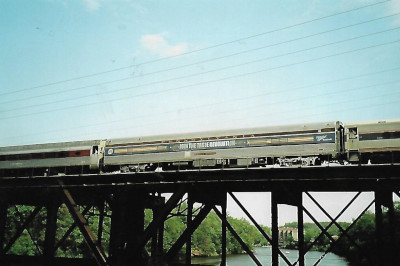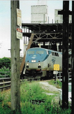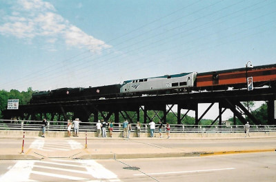 Amtrak Hiawatha Service 399 arriving at Milwaukee. We then boarded and enjoyed the ride to Wisconsin Dells. Upon our arrival, we joined several fellow riders along the Broadway Street road bridge across the Wisconsin River to photograph the train as it headed to New Lisbon to turn.
