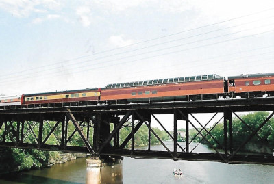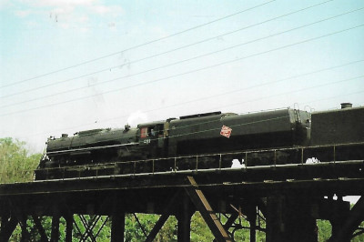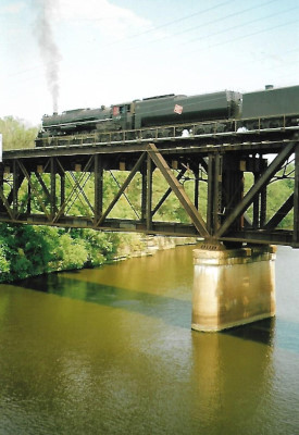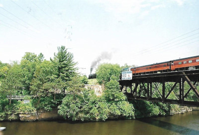 Miwaukee Road 4-8-4 261 crossing the bridge over the Wisconsin River at Wisconsin Dells.