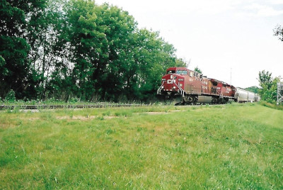 Canadian Pacific AC4400CW 86402 and another lead a freight through the Dells.