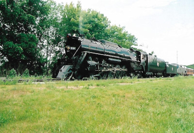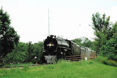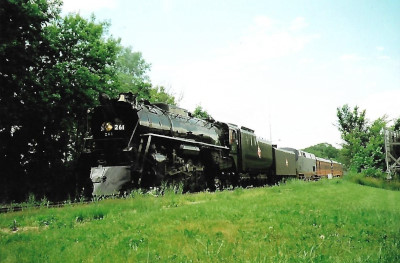 Milwaukee Road 4-8-4 261 leading the train into Wisconsin Dells for the return trip to Milwaukee.