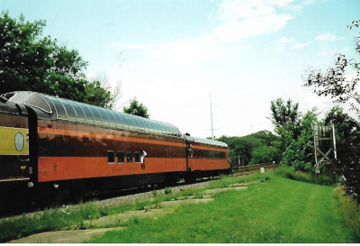 PPCX 800197 tap lounge "Montana" (ex. Wisconsin Central "Prairie Rose", nee MILW 162). Built 1947 for Olympian Hiawatha and rebuilt 1955, sold 1978 and leased to Wisconsin Central before being acquired by Friends of 261.
