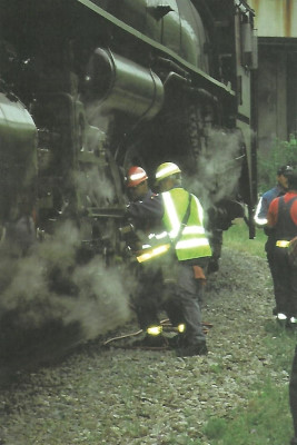 The steam engine with former Canadian National observation car "Pointe St. Charles" in the background.
